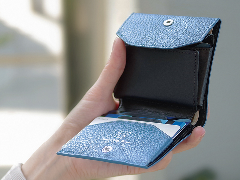 スマホのように縦に持ち、サッと使える国内最小級の二つ折り財布。クラウドファンディングMakuakeでは1800%超えの支持を獲得。