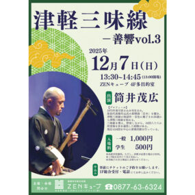 終了しました。 2025年12月7日(日)津軽三味線 ー善響vol.3ー【香川県善通寺市文京町】