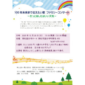 終了しました。 2025年12月28日(日)100年未来まで伝えたい歌 ファミリーコンサート 〜きっとあしたはいい天気〜【香川県高松市国分寺町】