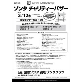 2026年3月12日(木)第31回 ゾンタ チャリティーバザー【香川県高松市寿町】