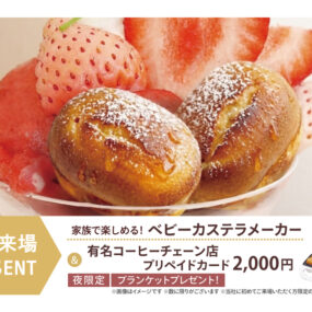 ベビーカステラメーカー&有名コーヒーチェーン店プリペイドカード2,000円分&夜の見学会限定あったかブランケット