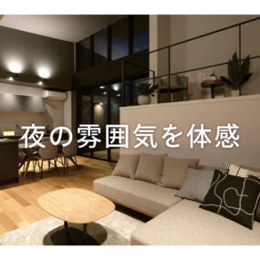 こだわりの照明が灯る「夜のLDK」の雰囲気や、寒い冬の夜でも快適な「断熱性能」は、この時間帯でしか味わえません。
