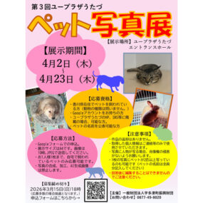 開催中 2026年4月2日(木)〜23日(木)第3回 ユープラザうたづ ペット写真展【香川県綾歌郡宇多津町】