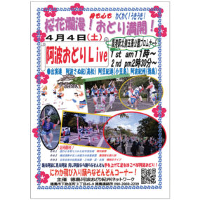 徳島の伝統芸能「阿波踊り」のイベントを、桜咲き誇ることでん高松築港駅北側の『玉藻公園』プロムナードにて開催。高松市で活動する「阿波さぬ紀」や、小豆島が拠点の「阿豆紀連」、徳島出身の連長が率いる「阿波紀州」の三連が出演。華麗な衣装をまとった踊り子たちが、日本古来の伝統楽器の音色に合わせて、躍動感あふれる舞を繰り広げる。