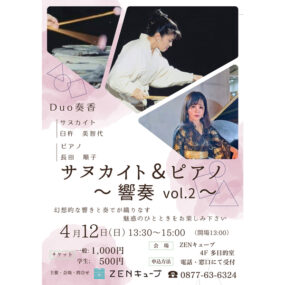 2026年4月12日(日)サヌカイト&ピアノ〜響奏 vol.2〜【香川県善通寺市文京町】
