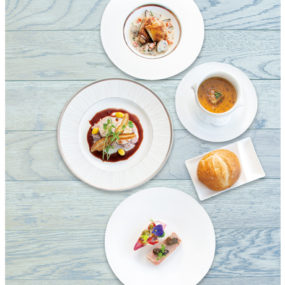 低温調理でジューシーに仕上げたメインディッシュをはじめ、様々な調理方法で作られたオリーブ地鶏のフルコース。