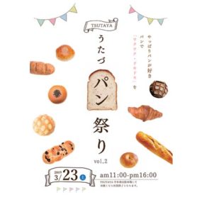 終了しました。3月23日(土) 『TSUTAYAうたづパン祭りvol.2』人気店が宇多津に大集合! みんな大好き「パン祭り」を開催!