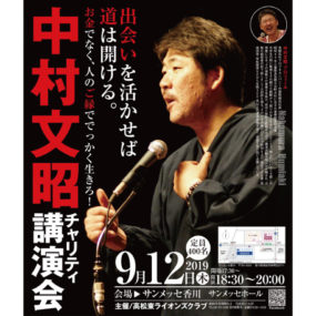 終了しました。9月12日(木)『中村文昭チャリティ講演会』