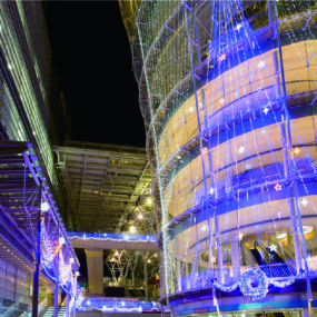 ウィンターソングに耳を傾けながら楽しむ、高さ34mの巨大ツリー。期間中はワークショップも開催しており、楽しみ満載!イルミネーションはもちろん館内にて開催される、香川大学『TERASU』の学生による讃岐提灯ライトアップやキメコミアートの作品展示なども見逃せない。今年3月にリニューアルし、魅力がパワーアップしたシンボルタワーをぜひ訪れて。