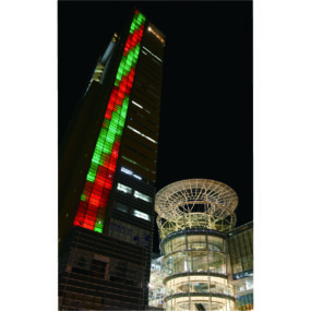 今年3月にリニューアルしたタワー棟の高さ151mのライティングウォールには初公開のプログラムも登場。