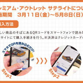 「プレミアム・アウトレットサテライト」が期間限定で登場!三菱地所グループが提供するこのサービスは、『静岡空港』に次いで2ヵ所目で、四国エリアでは初の試み。来場者はオンラインストアで販売している商品を実際に手に取って確認することができ、気に入った商品はQRコードを読み取り、クレジットカードで決済。そして、指定場所に商品が配送される、従来とは異なる新しいショッピングスタイル。2022年4月28日(木)まで、豪華賞品が当たる抽選会を開催中!SNSフォローキャンペーンも同時開催中!