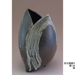 炭化焼締白濁釉花噐