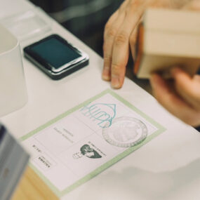 チケットを購入して各ブースに 行くと、お試しコーヒーと店舗ロゴシールがもらえる!