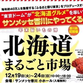 2016年12/19(火)~24(日)の6日間限定で『サンメッセ香川』に「北海道の旨い!」が大集合!毎年40万人以上が集まる「ふるさと祭り東京」をプロデュースする東京ドームが年の瀬に嬉しい北海道グルメイベントを開催。こぼれんばかりのイクラがのった海鮮弁当をはじめ、全国屈指のラーメン店『札幌ラーメン武蔵』の出店など注目グルメが満載!その他、ケーキやスイーツ希少部位を使ったローストビーフ丼も登場。四国・香川初登場のお店も多数あるので要チェック!