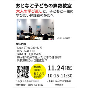 終了しました。 2025年11月24日(月・振休)おとなと子どもの算数教室【香川県綾歌郡宇多津町】