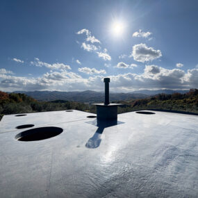 将来的に芝生やオリーブが植栽される予定の屋根からの見晴らしは最高!