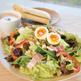 ボリューム満点のヘルシーメニュー。パンに挟んで食べるのもおすすめ!