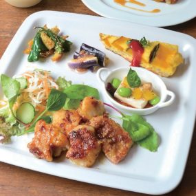 季節の花やグリーンに囲まれた空間で、安全にこだわった食材から作られるランチやスイーツで訪れる人の心を掴む「Decola」。季節の素材を使用したランチはメインのおかずを選べるスタイル。食後もおしゃべりをゆっくりと楽しめるよう、ランチタイムのデザートもしっかり食べ応えのあるサイズなのが嬉しい。