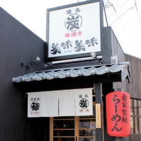 人気の「美味美味」が大幅リニューアルして更に美味しく進化!こだわりの串メニューは素材ごとに塩を変えるなど、手間暇かけて手作りした逸品揃い。仕上げに土佐備長炭で焼き上げる串焼きの旨さは別格。黒に統一して炭に囲まれるような雰囲気の店内空間も魅力。炭と塩にこだわった至福の美味しさをぜひ堪能してみて。