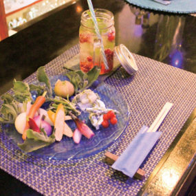 瀬戸内「ブルー」をイメージした、青に包まれた空間を提供するダイニングバー。カップルが多く来店しており、デートの締めに利用されている様子。隔週で婚活イベントも開催しており、出会いの場としても注目のスポット。ドリンクを頼むとセットでついてくれる、無農薬野菜のプレートが大好評。おしゃれで健康的な料理とドリンク&出会いが同時に楽しめる。