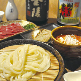 香川だけではなく東京・大阪・福岡・京都など様々なうどんを食べ歩いたオーナーが高松の鍛冶屋町にうどんのつけ麺のお店をオープン。素材は粉から厳選、注文を受けてからその場で打ちたて茹でたてのツルッとしなやかなうどんを堪能できる。ランチとしてはもちろん、夜は居酒屋感覚で利用できることもありぜひシメにも利用して欲しい。
