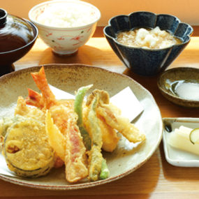 旬の食材や仕入れによって変わる様々な食材の揚げたて天ぷらを楽しめるこちら。「丸豊天ぷら定食」には10種類前後の天ぷらが盛り付けられ、幸せの一皿となっている。早くも人気の蕎麦と天ぷらのセットも夏の時期にぴったり。店内は、テーブル席、座敷、カウンター席とあるので、シーンによって使い分けることができるのも嬉しい。店主渾身の天ぷらを味わいにぜひ1度足を運んでみて。
