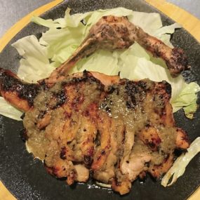 ●清流若どりのモモ一本焼き~特製玉ねぎ塩ダレ(999円+税)