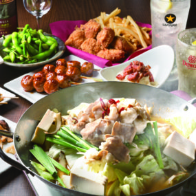 2時間飲み放題付国産牛もつ鍋+国産やきとりコース 12品 4,500円+税