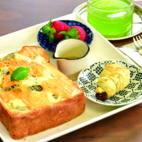 厚切りのトーストにおやつとフルーツ、ドリンクが付いたイチオシのメニュー。『たも屋』の工場跡をリノベーションしてOPEN。ナチュラルな雰囲気の店内は心地よい。店舗は『たも屋』北側に位置。