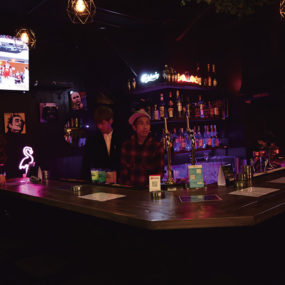 菊池寛通り沿いに新たに誕生した、カラフルな扉が目を引くパブリックバー。昨年12月にOPENし、店内にある巨大モニターでスポーツ観戦が楽しめる他、100種類以上のドリンクや製法にこだわった数種類のたこ焼きを提供。また、なんといってもALL1,500円でシーシャを楽しむことができるのが魅力。約15種類あるフレーバーは組み合わせも可能なので、スタッフに気軽に聞いてみて。仕事終わりの一杯や仲間と過ごす楽しい時間をぜひここで。