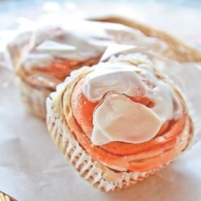 ■シナモンロール(173円)甘めの生地で巻き込むようにシナモンを巻いているため、どこを食べてもシナモンの味がする!