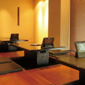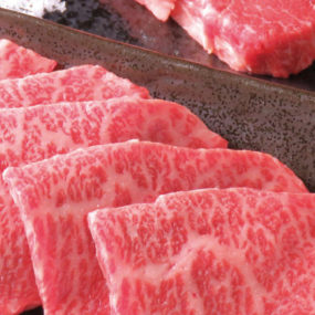 メニューのほとんどに地元食材を使用している焼肉店。県産オリーブ牛や『米屋ながはら』のオリジナルブレンド米を使用するほどのこだわり。そのこだわりは、ヨーロッパ産の塩や注文後に専用おろし金でおろす本わさびなど調味料にまで至る。メニューは国産牛を厚切りで提供する「特製タン(2,380円+税)」、「イチボ(1,800円+税)」や「シャトーブリアン(4,280円+税)」など希少な部位が日替わりで食べられる。