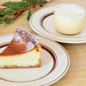 人気の「ベイクドチーズケーキ(410円+税)」はクリーミーな舌触りとあっさりとした味わいが特徴。「プリン(190円+税)」も評判。
