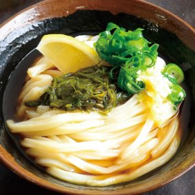 新潟県佐渡島出身の店主が手打ちする、もっちりとした食感の麺にファンも多い人気店。佐渡島ではみそ汁に入れたり、そばにかけたりとポピュラーな食材である海藻・ナガモをうどんに取り入れた、ここだけの一杯に注目が集まる。とろろのような粘りと豊富な食物繊維で健康へのアプローチもバッチリ!