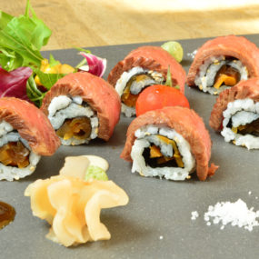 あて巻き寿司 ローストビーフ にんにく醤油(800円)