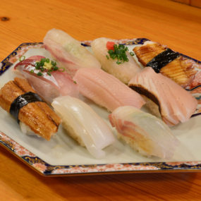 気軽に行ける寿司屋として高松の夜の街で16年続く『糸半』。20年近く寿司一筋の店主が握る寿司は、仕入れた魚を一番美味しい食べ方で提供してくれる。地酒はもちろん、日本各地の日本酒が揃う。また、飲みの後の締めの寿司 として訪れる人も多いそう。カウンター席のみなので、店主の握る姿を眺めながら寿司を味わえるカウンター席の良さも楽しめる。