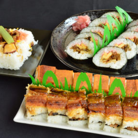 穴子寿司(800円)、讃岐の押し抜き寿司(450円)、穴子太巻き寿司(800円)