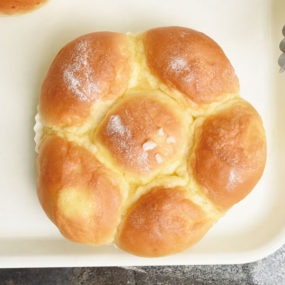 新ロゴマークとなる梅の花をイメージ。ふんわりと柔らかい食感でほのかに甘いちぎりパン。