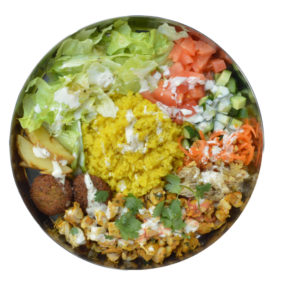 ニューヨークのチキンオーバーライスをアレンジ。様々なスパイスに漬け込み、じっくりオーブンで焼いたチキンはジューシーでスパイシーな味わい。