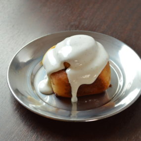試行錯誤の後に完成した絶品シナモンロールは、バニラビーンズがたっぷりと入った濃厚ソースと相性抜群。