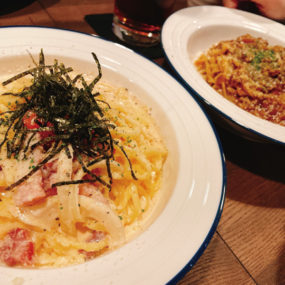 DJブースやダーツ、カラオケなどを設置した、エンターテイメント溢れるお店。個性豊かなスタッフが揃い、訪れた人を楽しませてくれる。人気の「明太子クリーム(1,200円)」など、パスタは常時6種類ほどラインナップ!時には気まぐれメニューも登場!