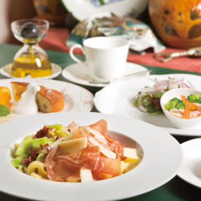 通常のパスタランチに+500円でデザートとコーヒーをプラスしたお得なセット。パスタはロングパスタとショートパスタの2種類から選べるので、お好みに合わせてチョイス。