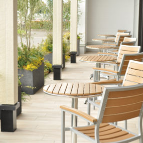 『モスバーガー宇多津店』が店舗を以前の西側に移し、『モス&カフェ』としてOPEN!通常の『モスバーガー』と異なりカフェ要素を強化した同店はハンバーガーだけでなく多彩なカフェメニューを楽しめる。店内は木の温かみを感じる安らぎの空間で、外側にはゆったりとしたテラス席もご用意。期間限定のドリンクやスイーツも登場中なので、カフェとしても気軽にご利用を。