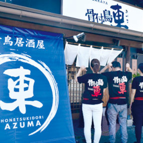 オーブンではなく、フライパンで1つひとつ丁寧に焼き上げることによりパリッと香ばしい皮目とプリッとジューシーな肉の旨味を凝縮した骨付鳥を味わうことが出来る。「鶏肝焼きそば」や「とりソーセージ」、新鮮な馬刺しなど本店では味わえないメニューがあるのも嬉しい。種類豊富なメニューからテイクアウトも可能!!最新情報はInstagram(honetukidori.azuma)をCheck!お子様連れでも利用しやすいように座敷席も完備。お子様に限らず大人にも「わたがし」をサービスとして提供!!