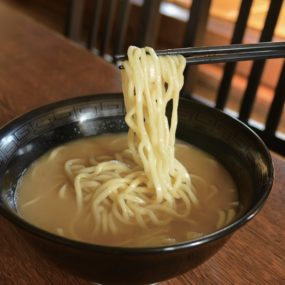『ごぞうらぁめん』うどん粉配合のモチモチ麺と豚骨の風味が香る濃厚スープを堪能して
