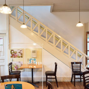 大正3年(1914)建築の歴史ある建物は国の登録有形文化財にも指定されている。職人の手仕事によって生まれた窓ガラスは貴重な代物。