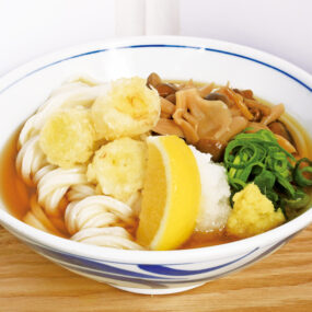 1982年に創業し、人々に愛され続ける『うどん棒』。コシのある細麺が特徴で、冷たいうどんに天ぷらがのった「ひや天うどん」発祥のお店でもある。月替わりで季節メニューを提供しており、5月はきのこたっぷりの涼うどんが登場!