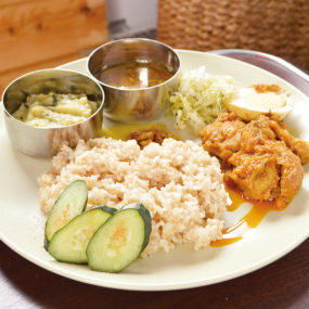 南インドに滞在中、現地の友人や主婦、シェフから教わった本場仕込みの料理を提供。素材を活かし、本場の料理の中でも日本人のロに合うものを組み合わせているそう。また、毎週金曜には番町の『アピマート&ハラールショップ』にてお弁当を販売中!