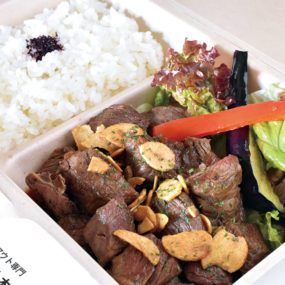 厳選された肉メインのお弁当を販売する弁当店。「オリーブ牛」の大トロカルビを使用した、噛むと良質な脂の甘味がじゅわっと広がるハンバーグや秘伝の味噌ダレをたっぷりと絡めたハラミ焼肉など常時約10種類を販売。店頭販売分の他、予約時間に合わせて出来たてのお弁当をご用意。その他オードブルや宅配も可能。残暑をガッツリお肉のお弁当で乗り切ろう!