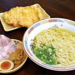 全国的に有名な『はまんど』が初のセルフスタイルのお店をOPEN!豚骨とイリコを使った「中華そば」は、艶のある細麺に黄金色の澄んだスープが絡み合う。また、サイドメニューも充実しており、手のひらサイズの「とりの天ぷら(280円)」は、外はサクサク、中はふっくらで食べ応え抜群。1度食べるとヤミツキになる、至極の一杯をぜひ味わって。